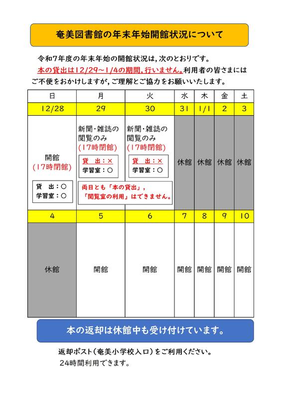 今年も奄美図書館をご利用いただきありがとうございました。