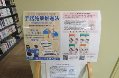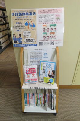 鹿児島県も県内の普及活動に取り組んでいることから,当館でも手話普及や啓発の一環として関連本のミニ展示を行っています。