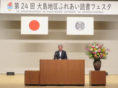 まず,表彰式が行われ,大島地区優良読書会表彰は,東城小中学校親子読書会(奄美市),すずかけの木(奄美市)が,大島地区図書館・公民館図書室職員功労者表彰は,泉 重行氏(瀬戸内町立図書館・郷土館前館長)が受賞されました。