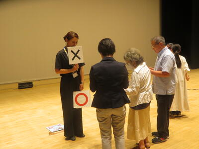アニマシオンの体験では,一人一人に配布されたカードを手掛かりに仲間を見つける「一緒のほうがうまくいく」や,限られた質問で昔話の人物を特定する「あなたは何太郎さん?」を体験しました。自然と笑顔や会話が生まれ,和気あいあいとしたにぎやかな活動となりました。