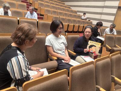 まず,「読み聞かせの基本」「読み聞かせの大切さ」の講義の後に,実習を行いました。そして,参加された方々は,講義で学んだことをもとに選書を行い,ペアやグループを作ってお互いに読み聞かせを行いました。
