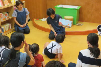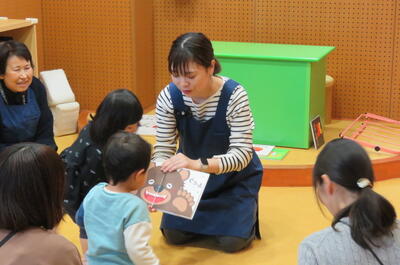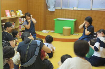 その後,本館職員による,エプロンシアター,手遊び歌,ネリヤカナヤ創作童話コンクール受賞作品のパネルシアター等の読み聞かせが行われました。