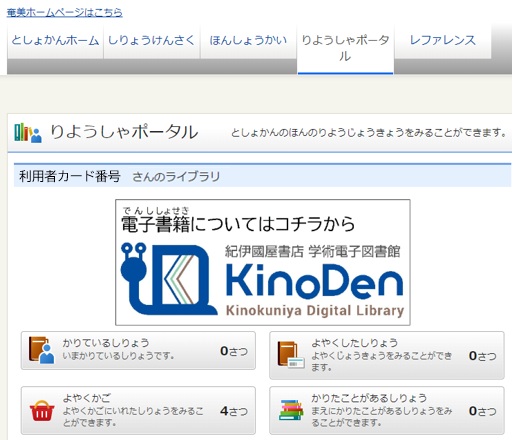 「りようしゃポータルサイト」は じぶんの かりているほん や よやくしたほんなどが