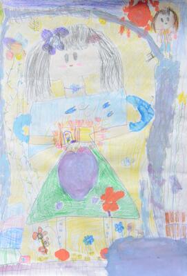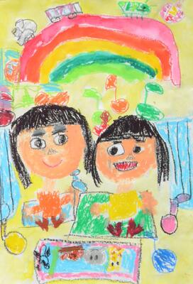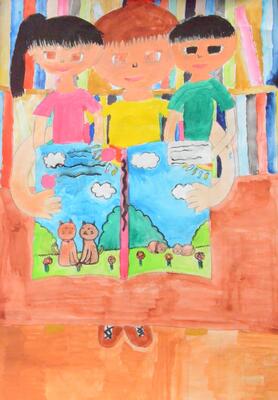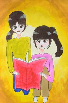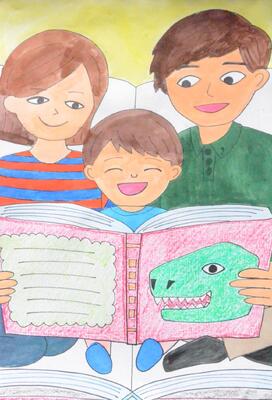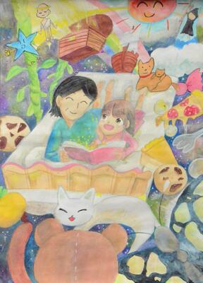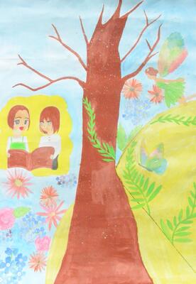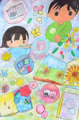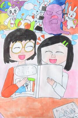 鹿児島市立吉田小学校 3年 山口 栞季 さん 「花としゃぼん玉 お父さんと読書」 |