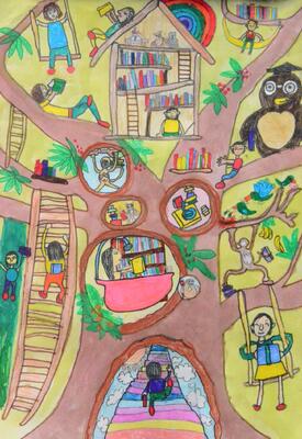 姶良市立竜門小学校 3年 有村 月朝 さん 「本の木」 |