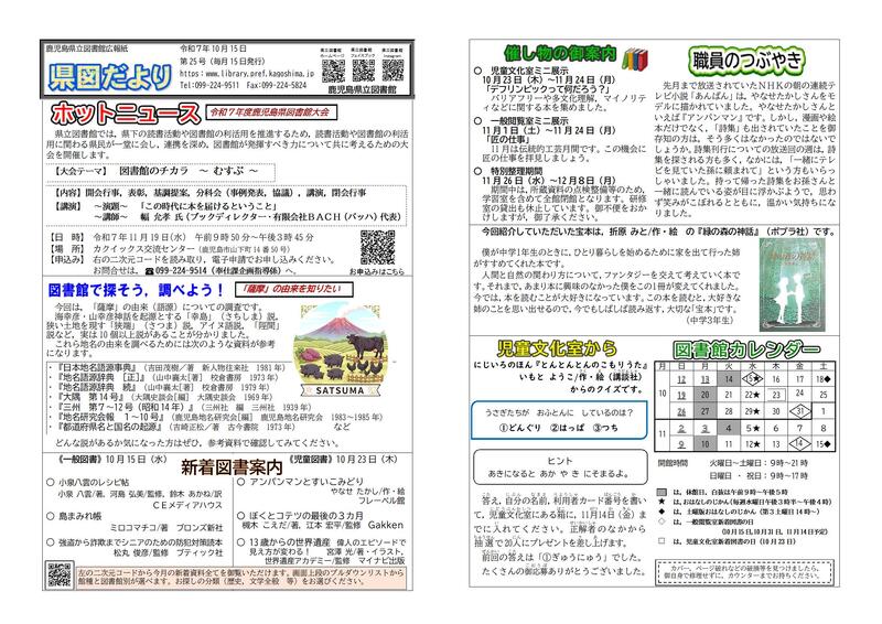 鹿児島県立図書館広報紙「県図だより」25号(令和7年10月15日号)