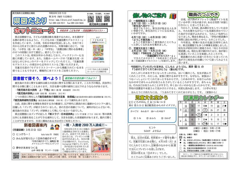 鹿児島県立図書館広報紙「県図だより」30号(令和8年3月15日号)