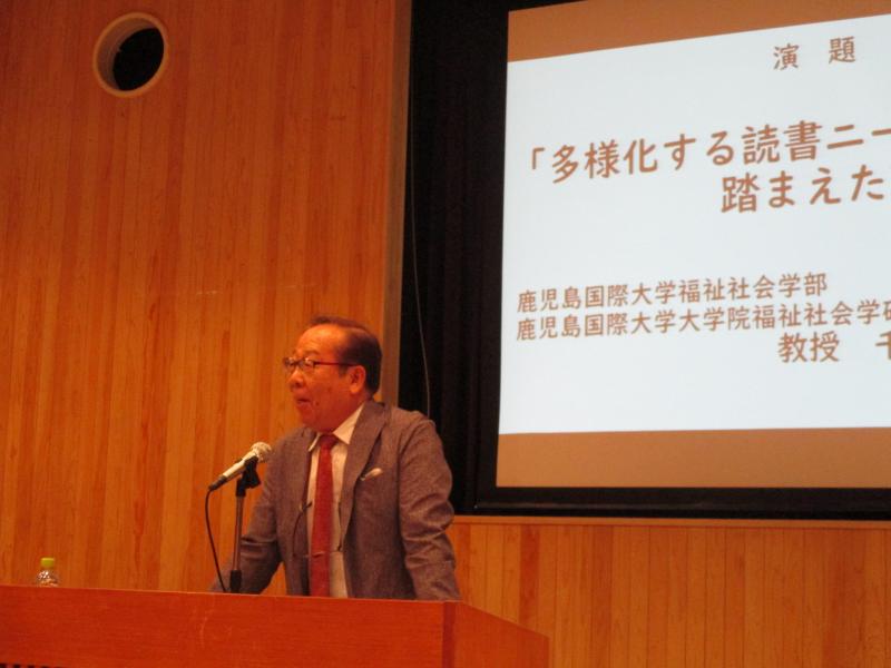 講演「多様化する読書ニーズを踏まえた環境の整備」 講師 鹿児島国際大学福祉社会学部 教授 千々岩 弘一 氏 |