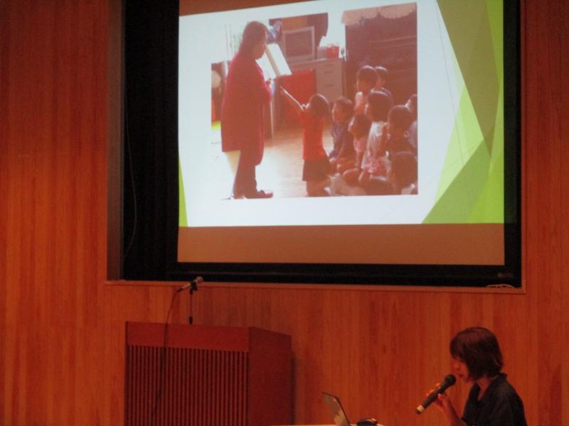次に,県立図書館ボランティア「さざなみ」の代表 鳥羽啓子さんに,実演をしていただきました。わらべ歌や手遊び歌,たくさんの本の紹介,演習などもしていただきました。参加者からは,「県内外で活躍されているグループの実演を見ることができてよかった」,「読み聞かせの時に,わらべ歌も用いてみたい」といった感想が寄せられました。
