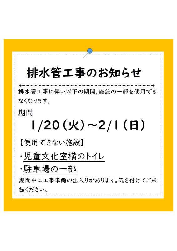 排水管工事に伴い,令和8年1月19日(月)~令和8年2月2日(月)まで